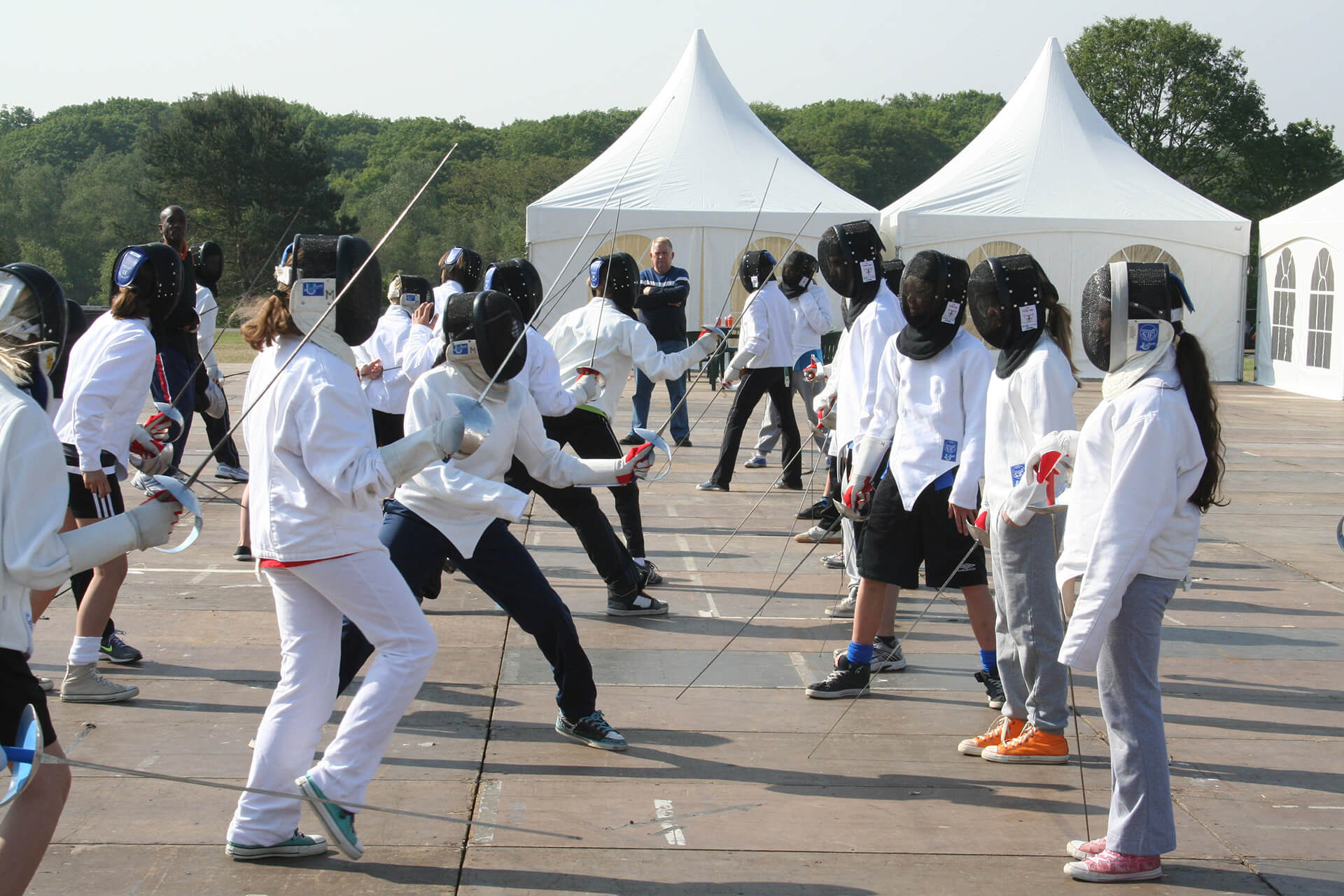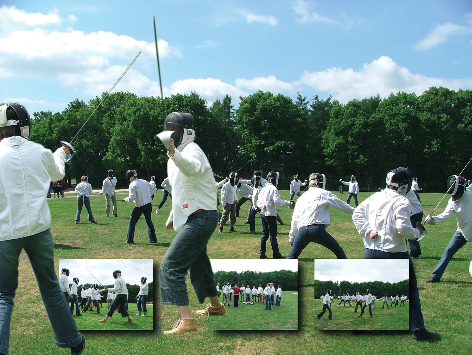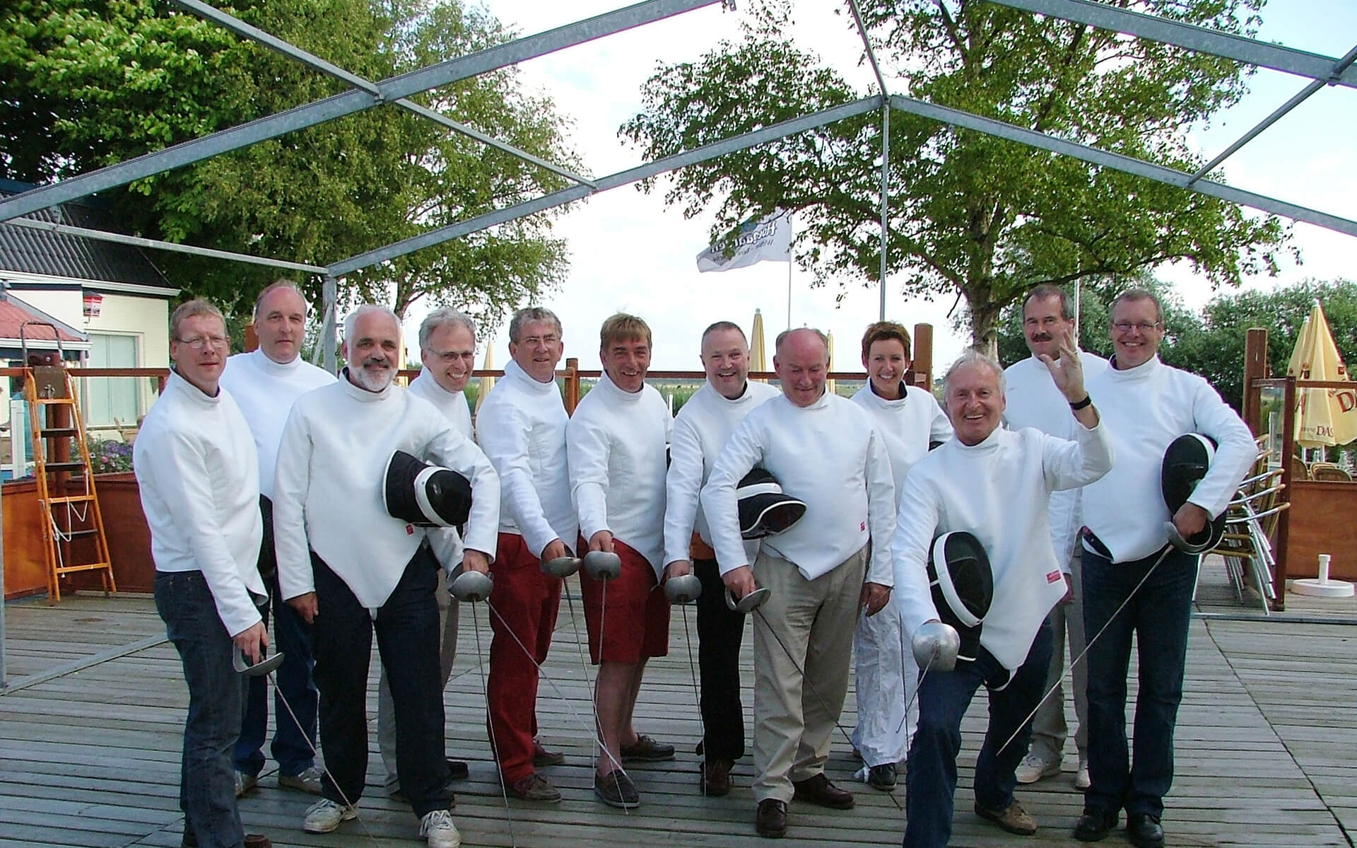 “In anderhalf uur kan ik jullie geen schermen leren, maar jullie er wel enthousiast voor maken”, beloofde Georges Derop bij de opening van zijn clinic. Ja, ja, dacht ik, maar niet bij mij, ik ben niet zo van de wapens en de vechtsport. Met lichte tegenzin heb ik me aan dit onderdeel van het jaarlijkse afdelingsuitje onderworpen, maar gaande weg werd het wel leuk.
